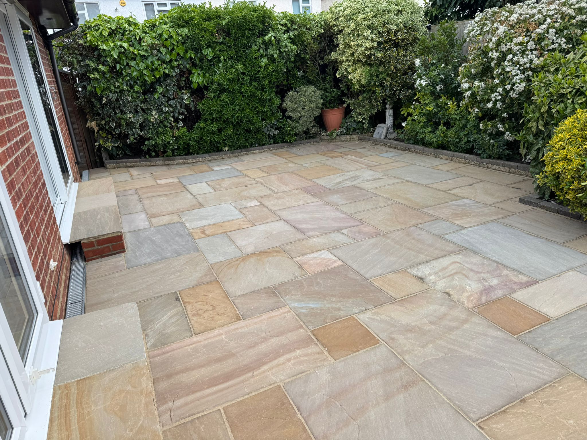 Transform your outdoor space into a serene retreat with the timeless beauty of Indian Sandstone Patios